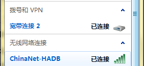 SSID 和桥接的 SSID 填写一样的,密码也是,这样当你电脑移动位置时,就不用重新连接,因为用的是同样的 SSID 和密码。注意,信道和频段带宽都要选择一样的。之前我频段带宽这里用的是自动,结果无线网络搜索的时候有两个 ChinaNet-HADB,信号格数不一样,明显是两个信号没有合并,估计是因为有两个频段的原因。在设置完成之后,重启路由器,然后就会发现,网络连接里的 ChinaNet-HADB 信号已经变成满格了~这是因为由于路由器在中间进行了一次搭桥,扩大了无线的范围。