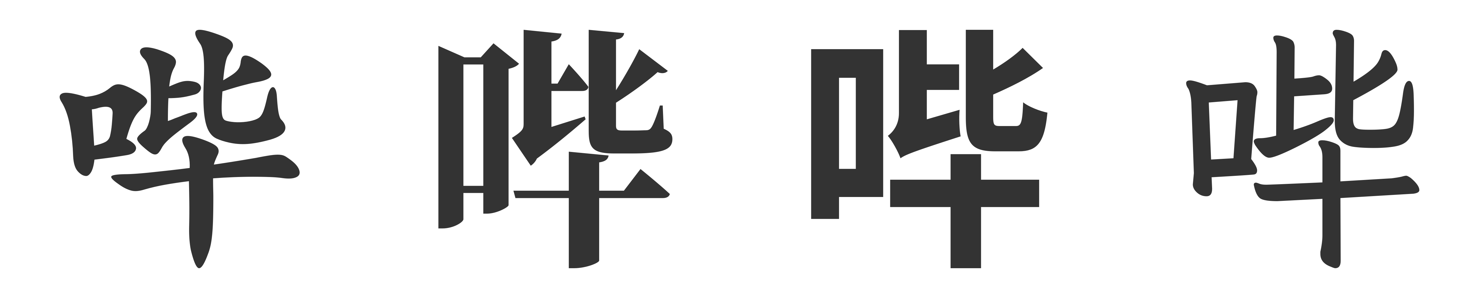 字形是指一个单独字符在特定的字体(字型)中的具体外观或形状。每个字符都有对应的字形,它们描述了字符的细节和轮廓。如下图,就是「哔」这个字符在不同的字体下不同的字形: